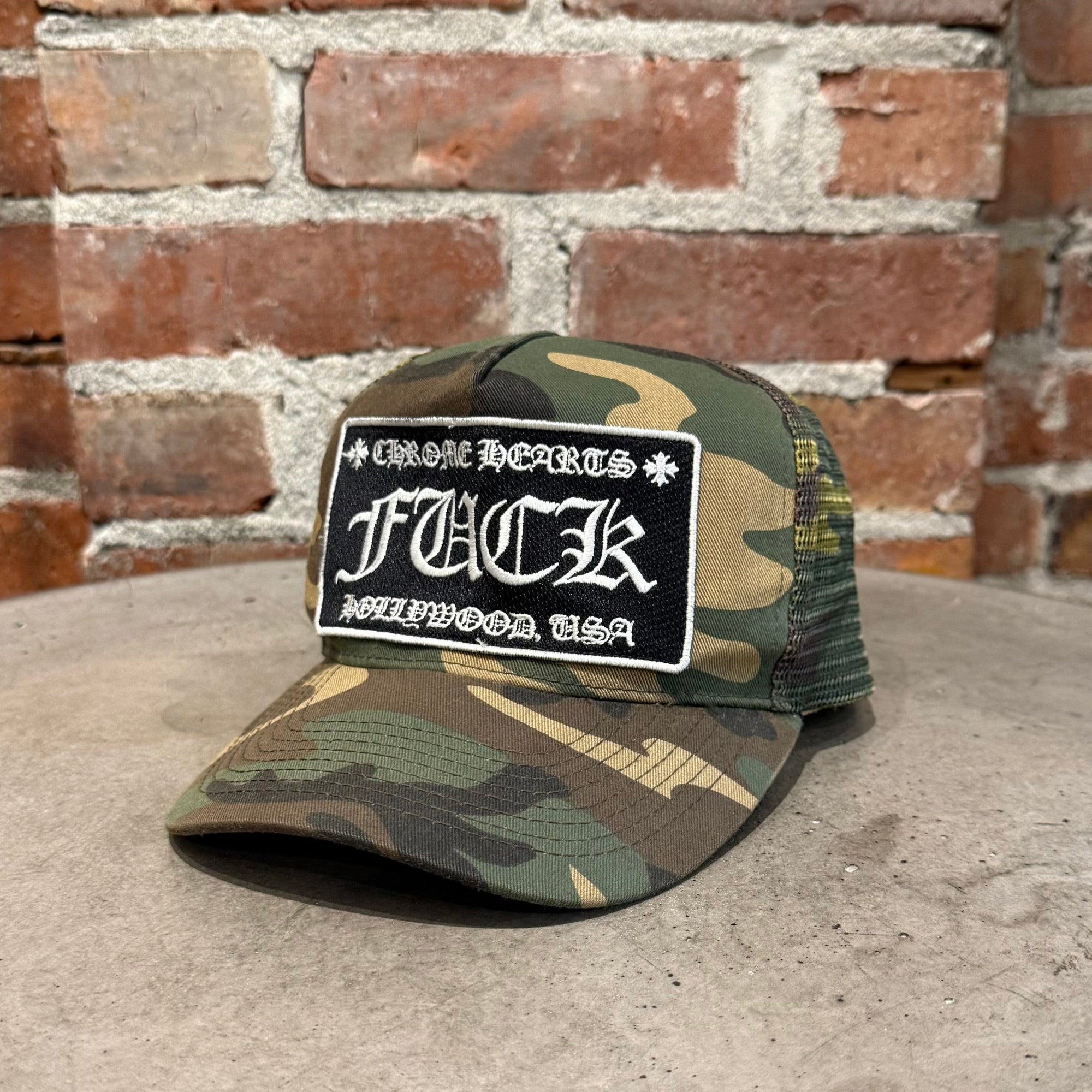 CHROME HEARTS FUCK YOU TRUCKER HAT ‘CAMO’