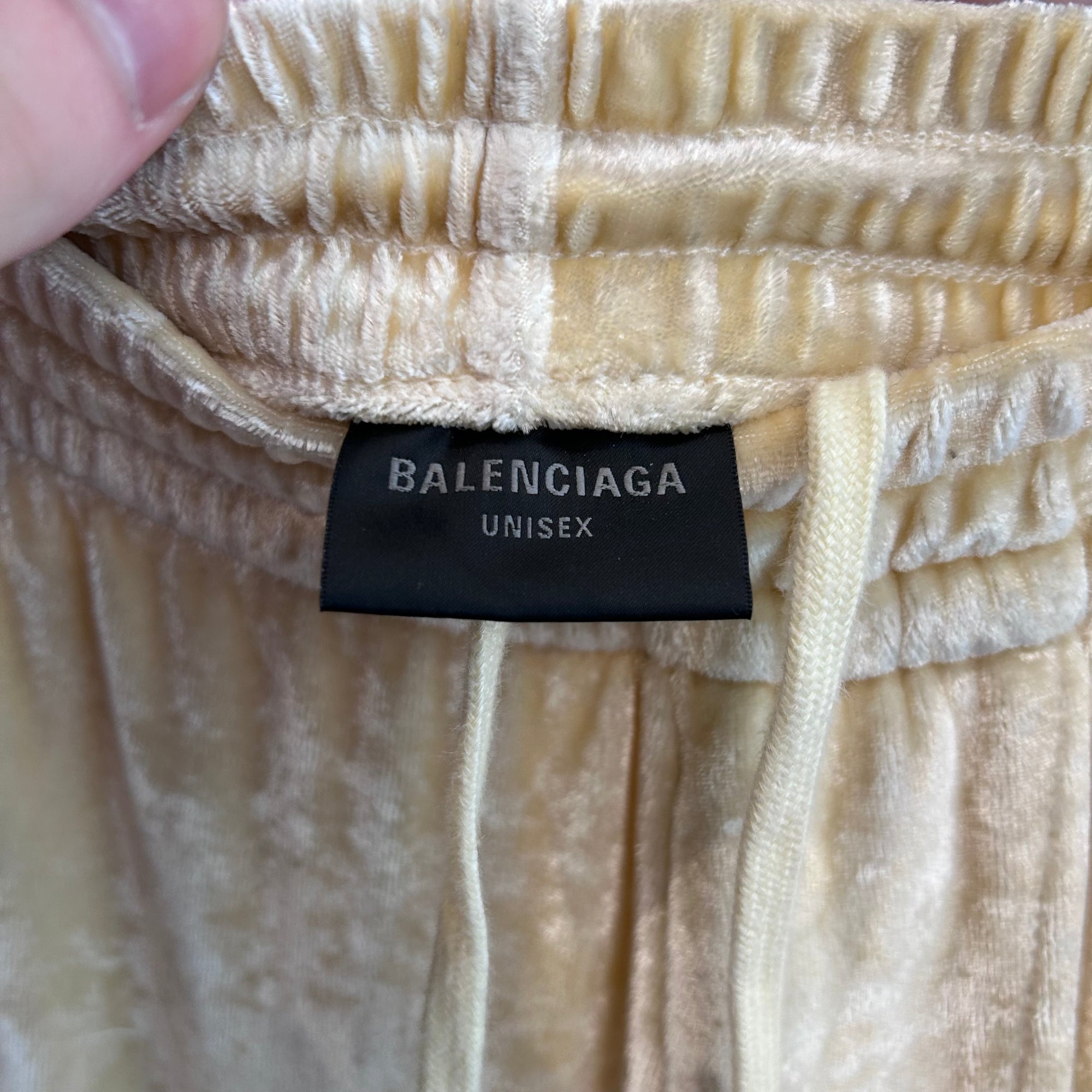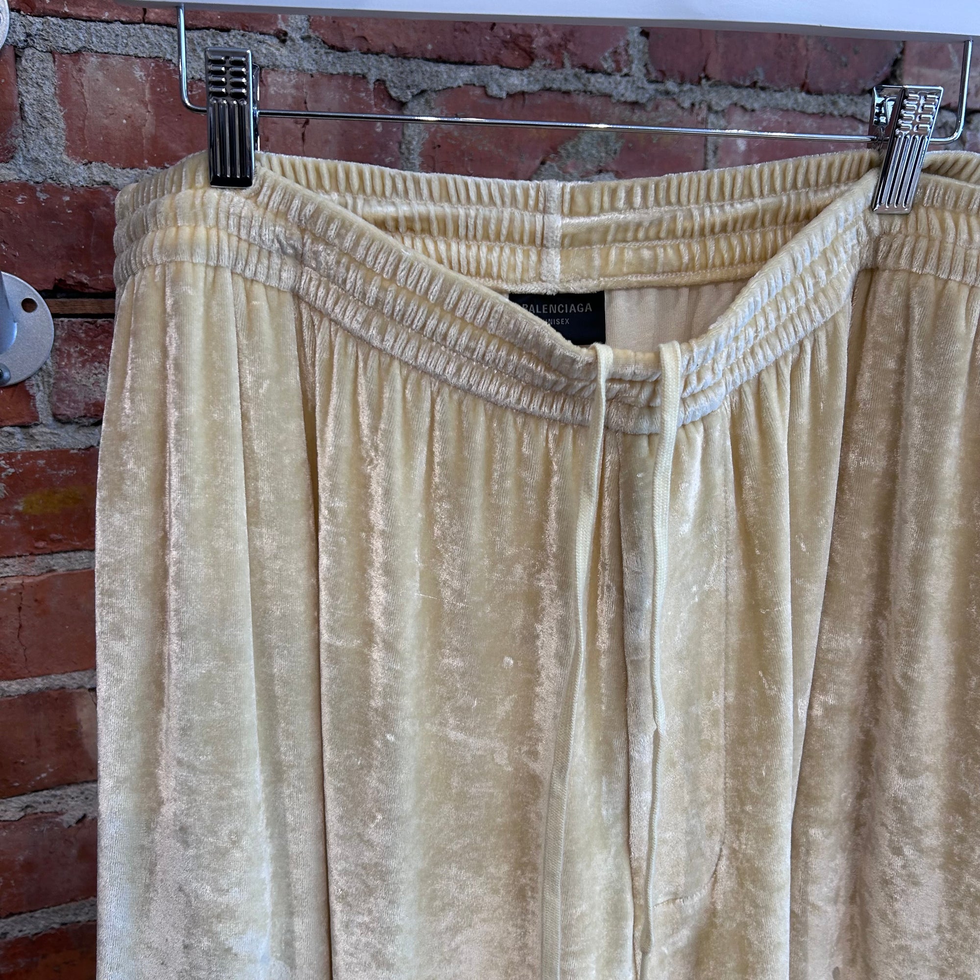 BALENCIAGA CRUSHED VELOUR SWEATPANTS ‘PALE YELLOW’