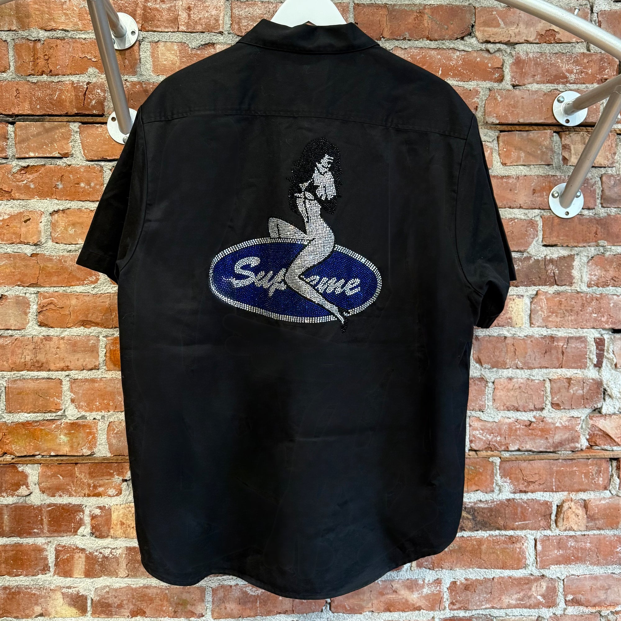 SUPREME RHINESTONE PIN UP S/S BUTTON UP ‘BLACK’
