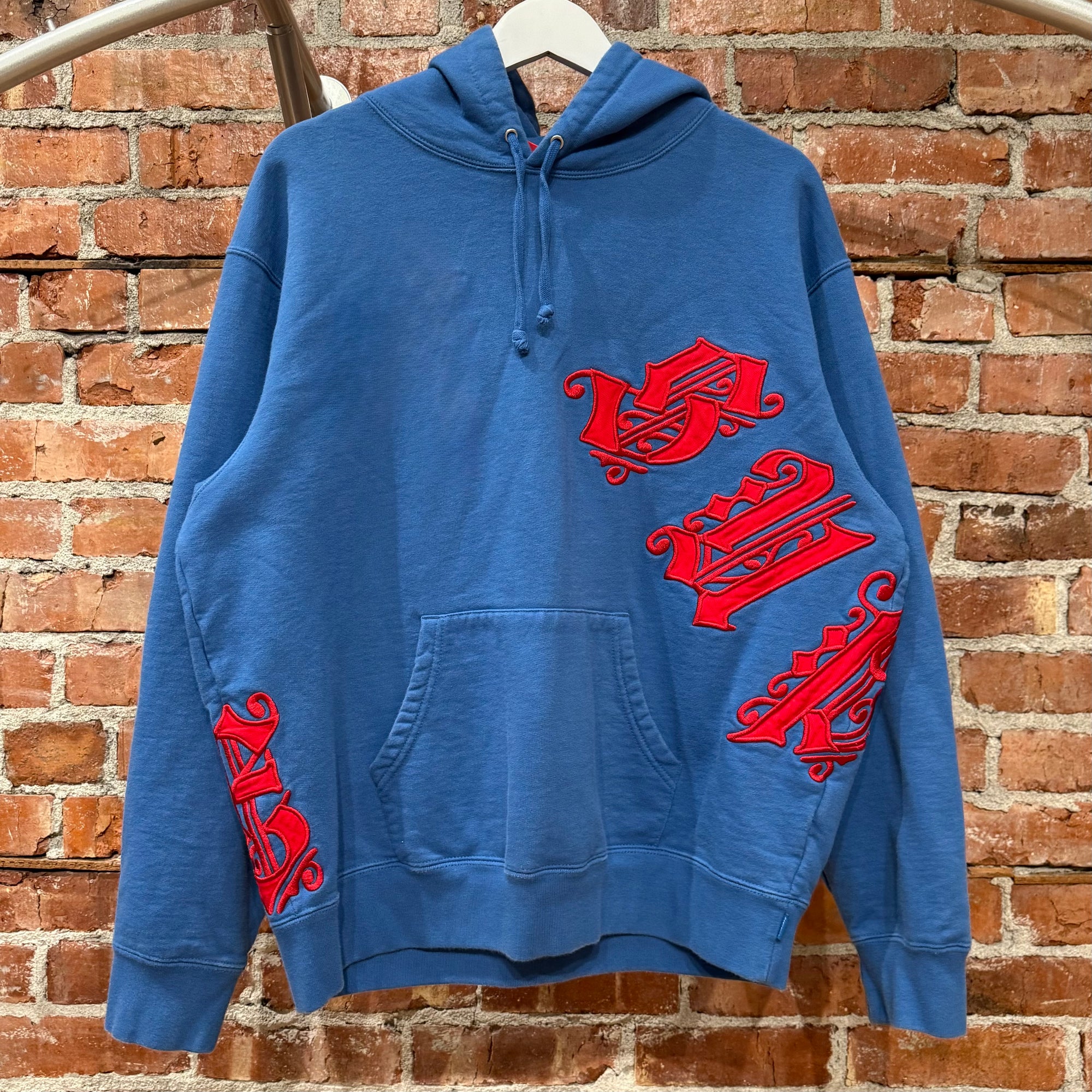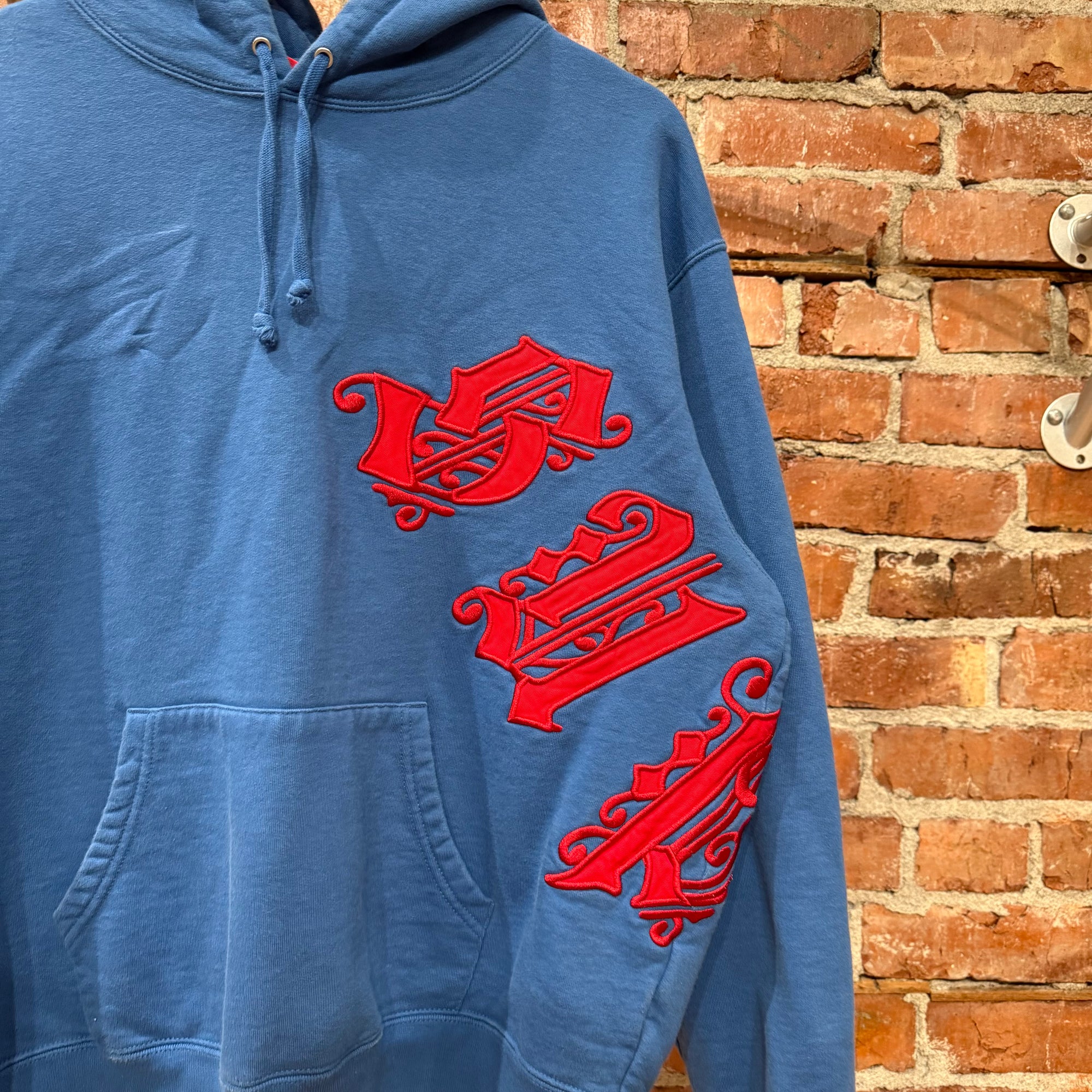 SUPREME OLD ENGLISH WRAPPED HOODIE ‘BLUE/RED’