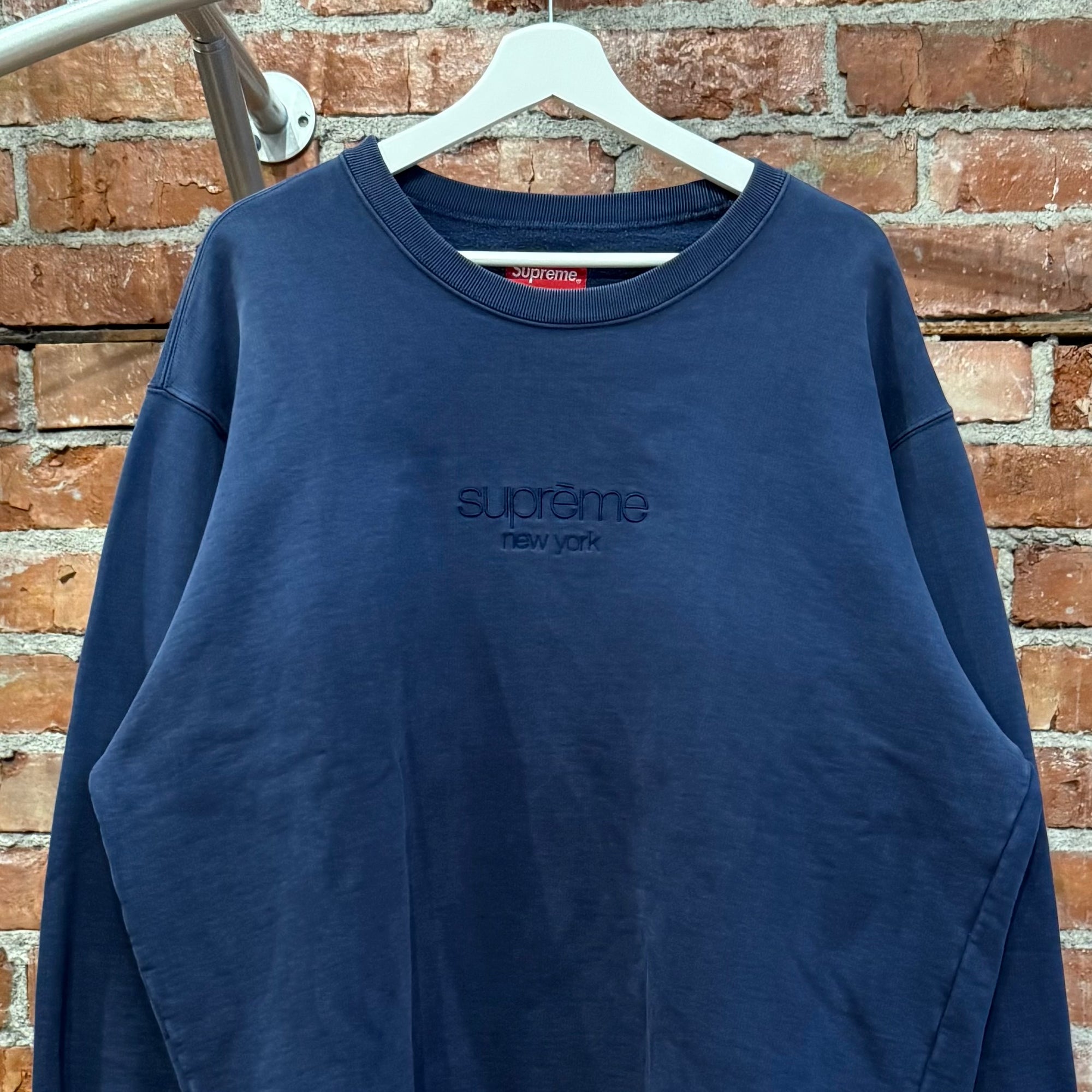 SUPREME CLASSIC LOGO TONAL CREWNECK ‘NAVY’