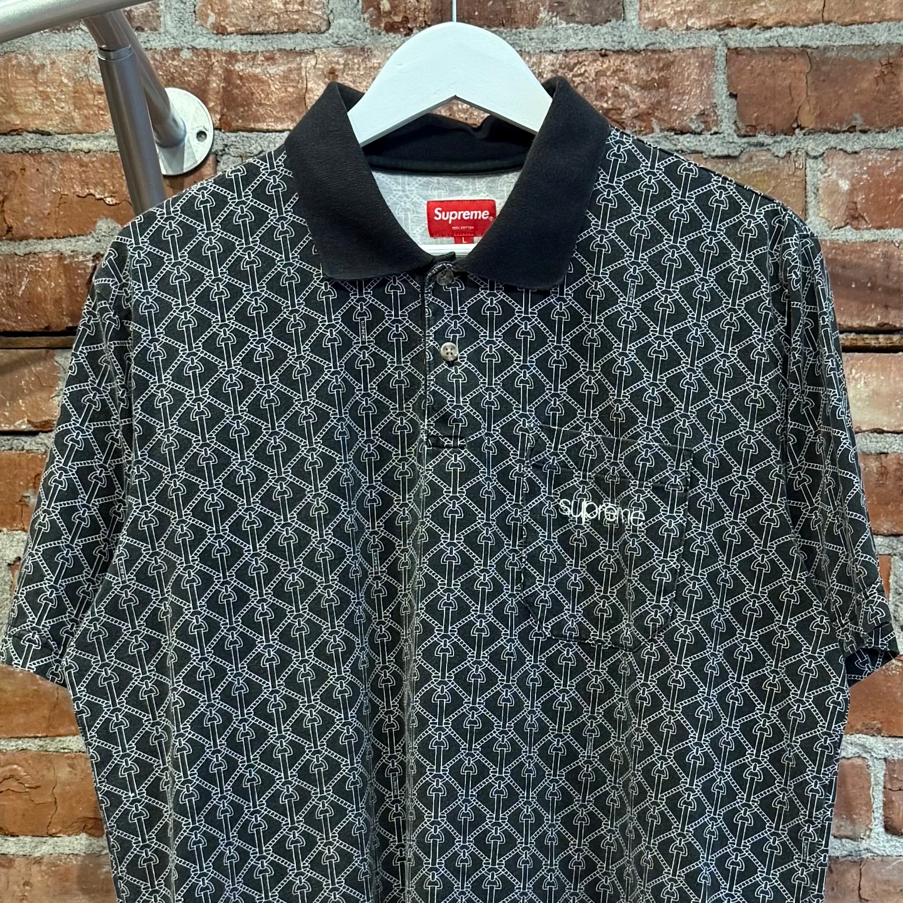 SUPREME CHAIN PRINT POLO ‘BLACK’