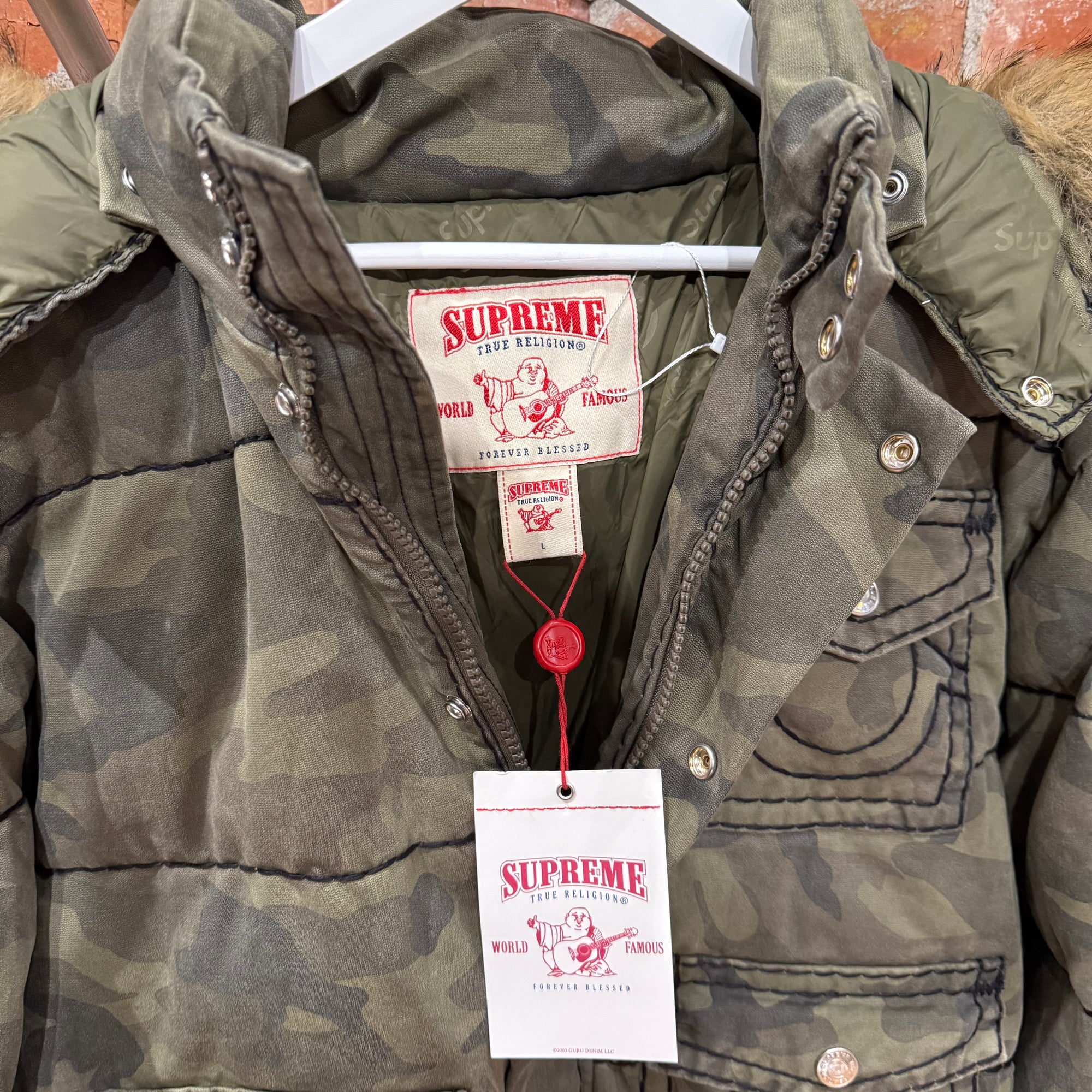 SUPREME x TRUE RELIGION PUFFER JACKET ‘OLIVE CAMO’