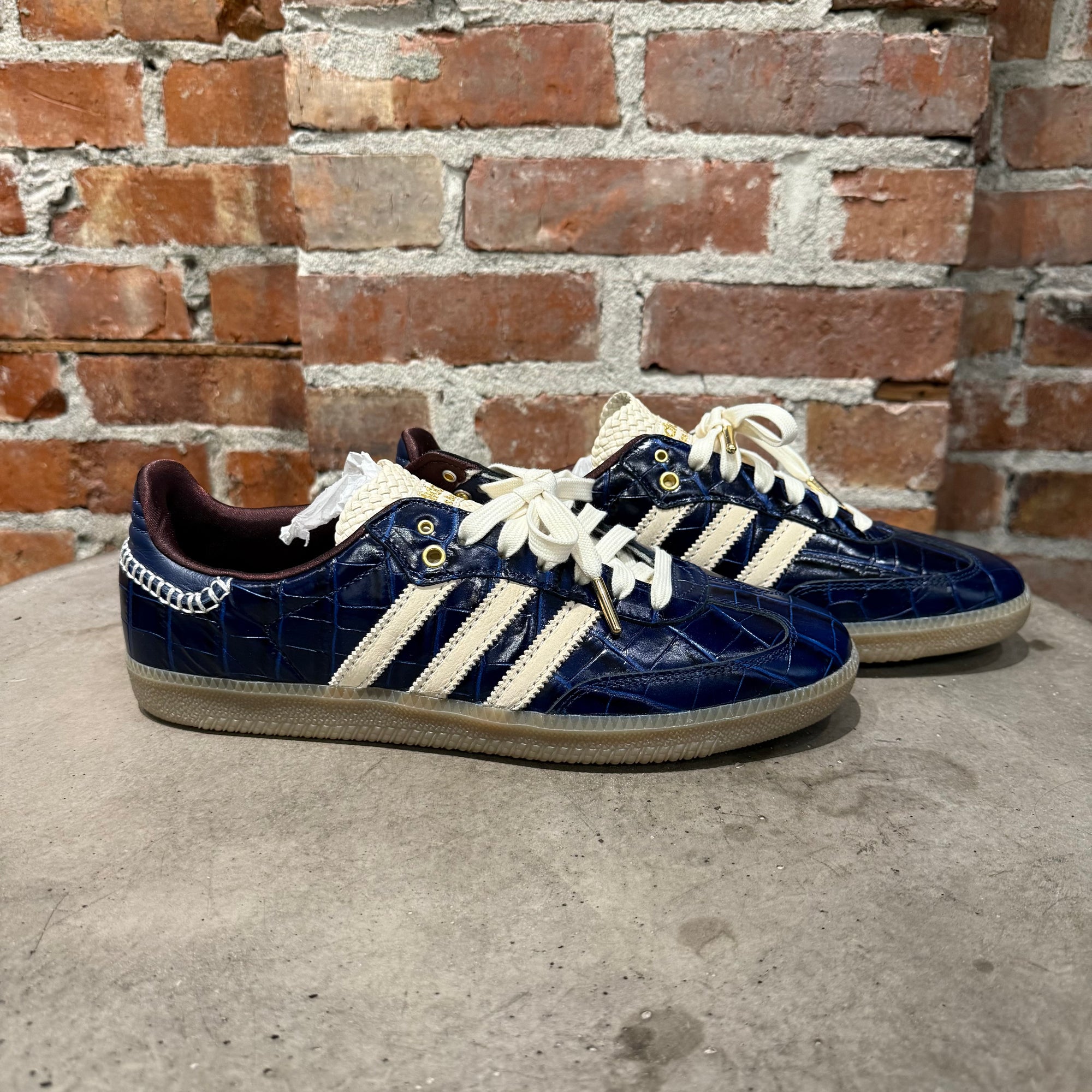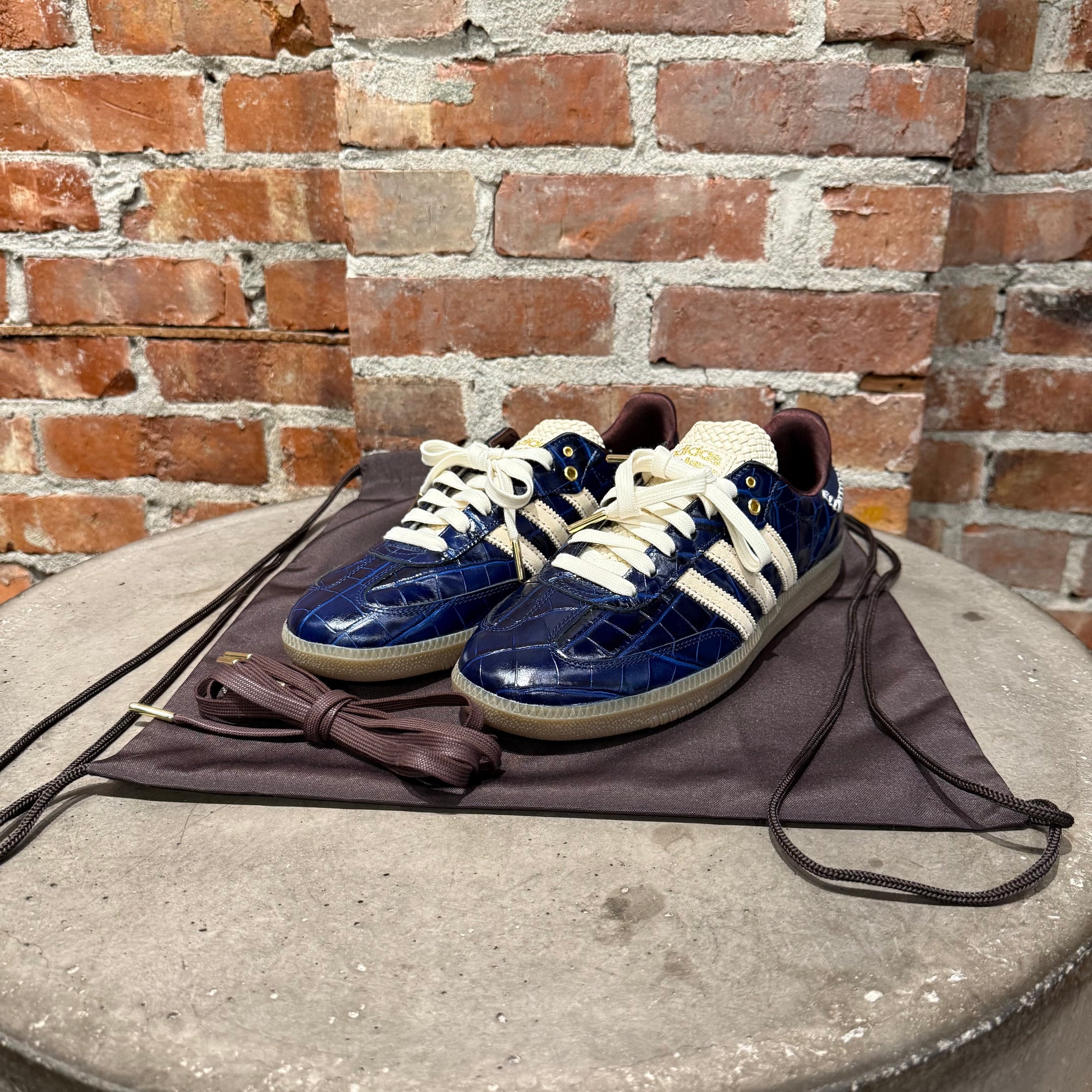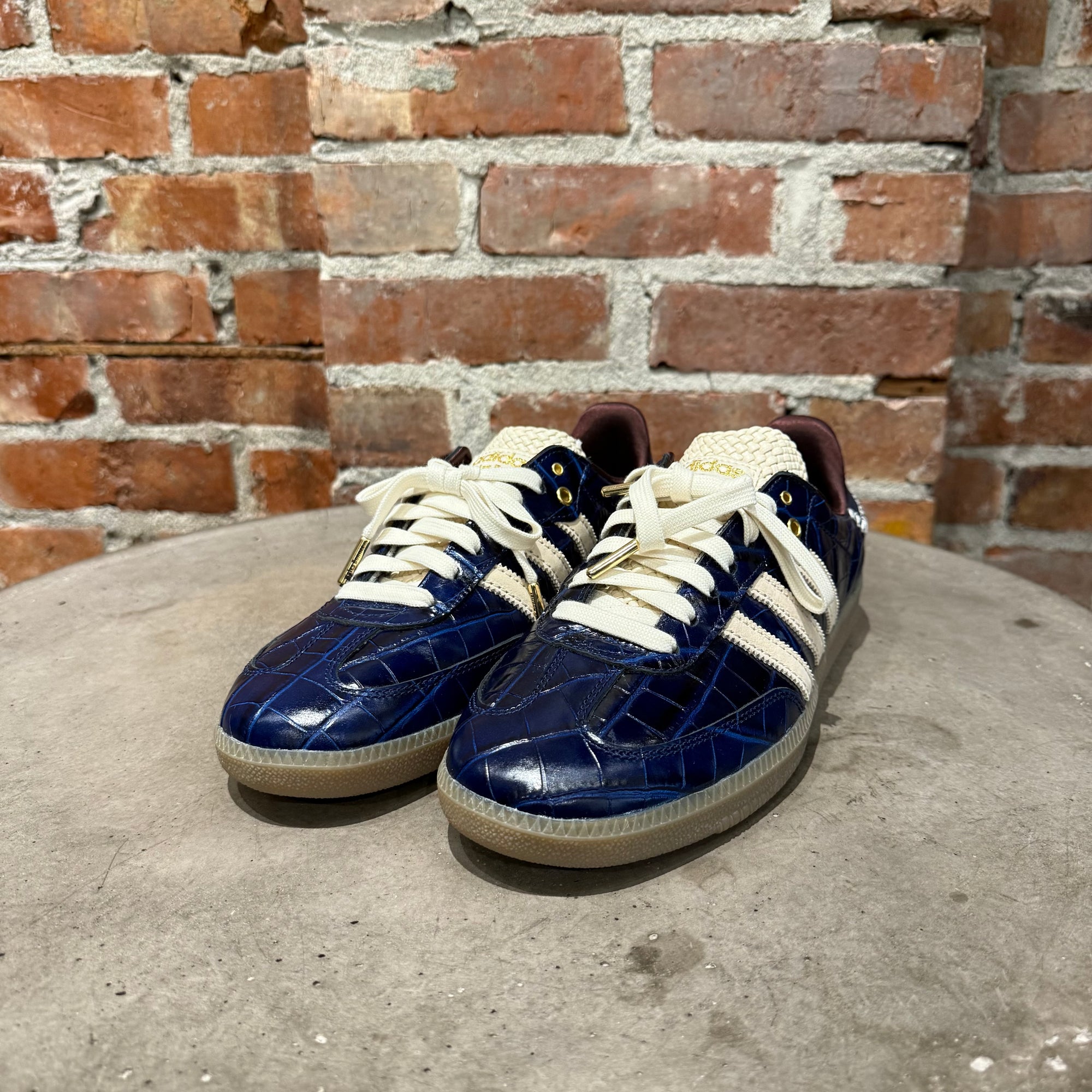 WALES BONNER ADIDAS CROCODILE SAMBA SNEAKERS ‘NAVY’